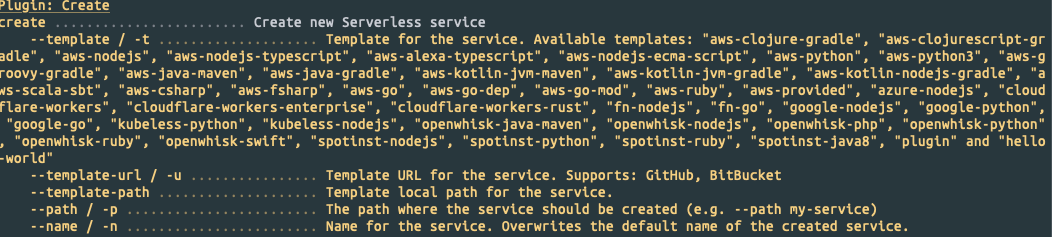 잠깐 서버리스에서 제공하는 템플릿들이 무엇이 있는지 알아보도록 하겠습니다!