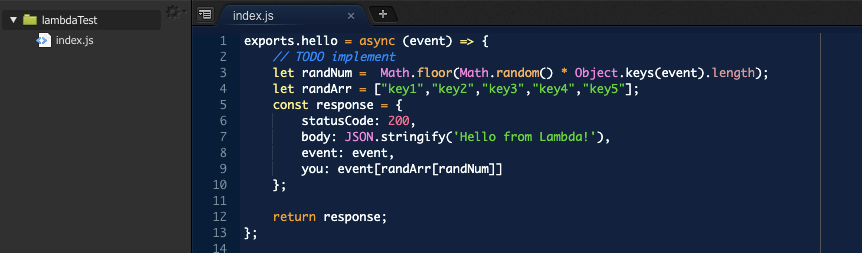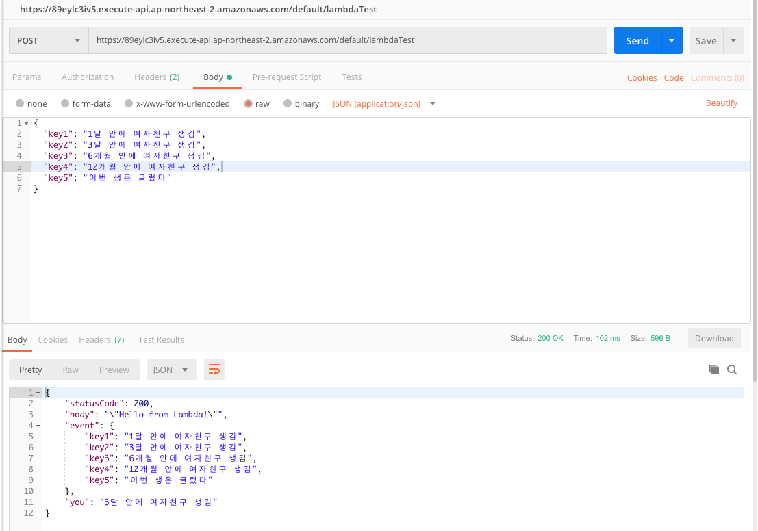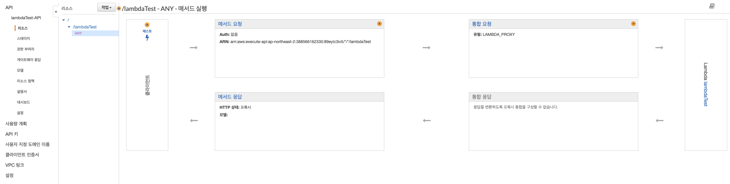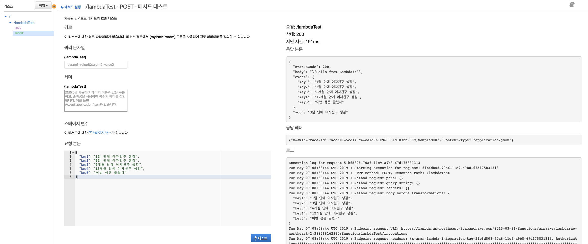lambda 함수 입력부분에는 앞에서 만든 lambdaTest 를 쓰면 됩니다.