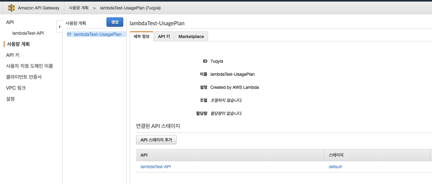 그 후 사용량 계획에 API키 탭에서 API 키를 추가하면 됩니다.