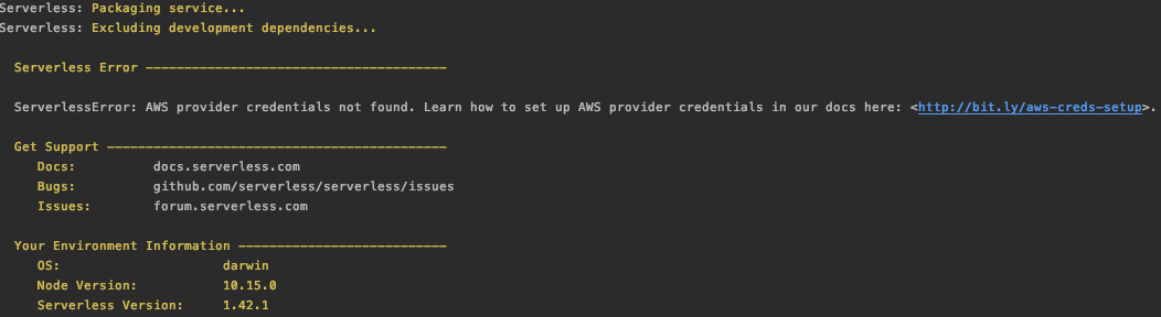 sls config credentials --provider aws --key <키> --secret <비밀키>
