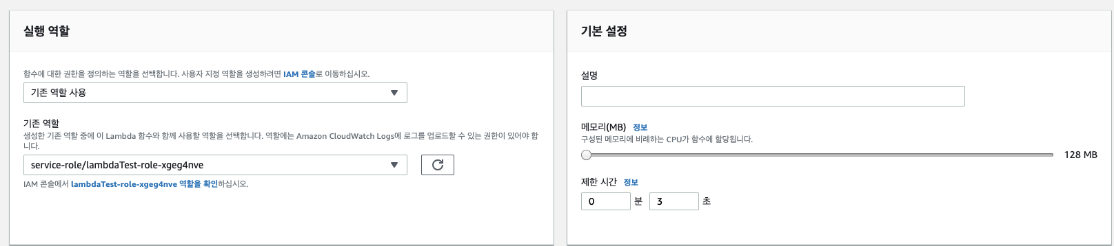 실행 역할에서는 함수에 대한 권한을 정의할 수 있습니다. 아직 여기를 건드리긴 너무 어설프기 때문에 패스..