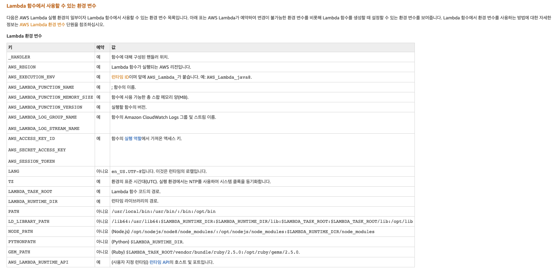 환경변수는 말 그대로 환경변수 입니다. 코드와 상관없이 함수 코드와 라이브러리에 설정을 동적으로 전달할 수 있게끔 만들어줍니다.